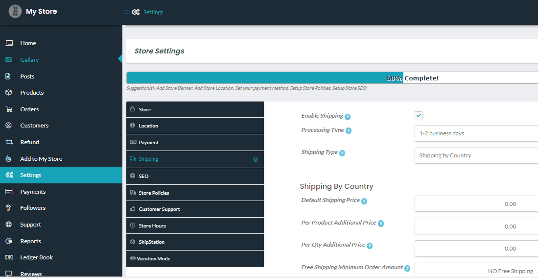 6) In Shipping Type, select Shipping by Country >> only this option available
