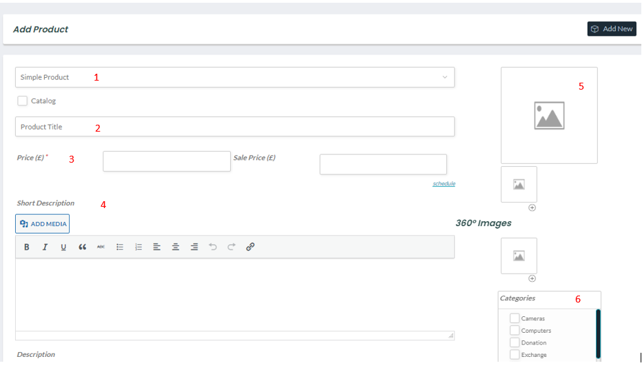 5) Click on the landscape icon to add product image. You can add more images by clicking on the smaller landscape icons with + signs – #5