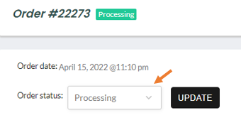3) Click on the drop down arrow to UPDATE the Status of an Order